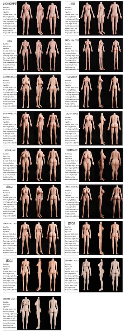 - Note: The picture below is the body shape chart of TPE. Please choose the body shape you like.
